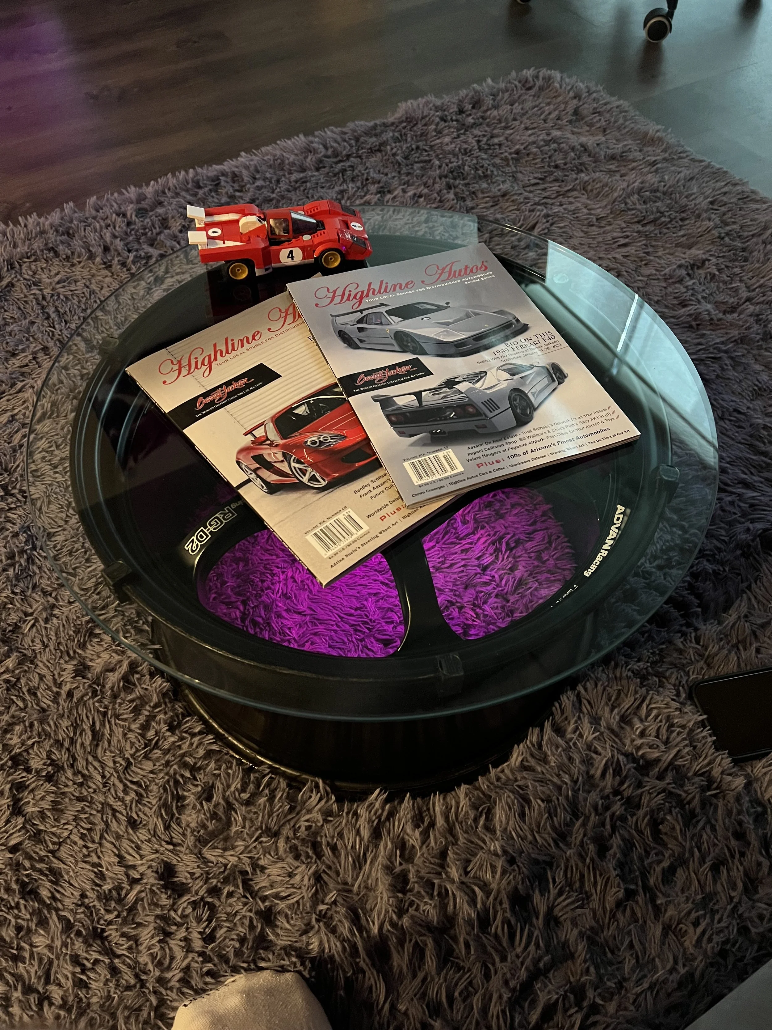 I embarked on a transformation journey, breathing new life into a severely damaged Advan RGD2 wheel, and sculpting it into a timeless coffee table masterpiece. This endeavor exemplifies my dedication to repurposing and showcasing the seamless fusion of artistry and function, pushing the boundaries of furniture design.